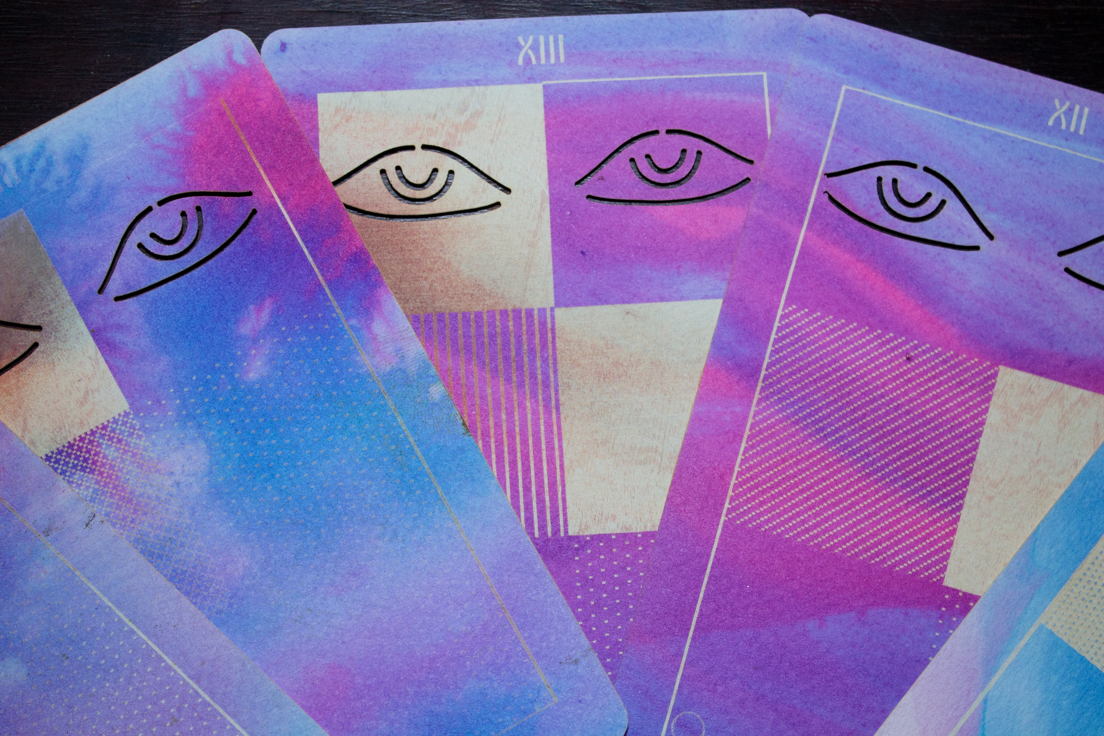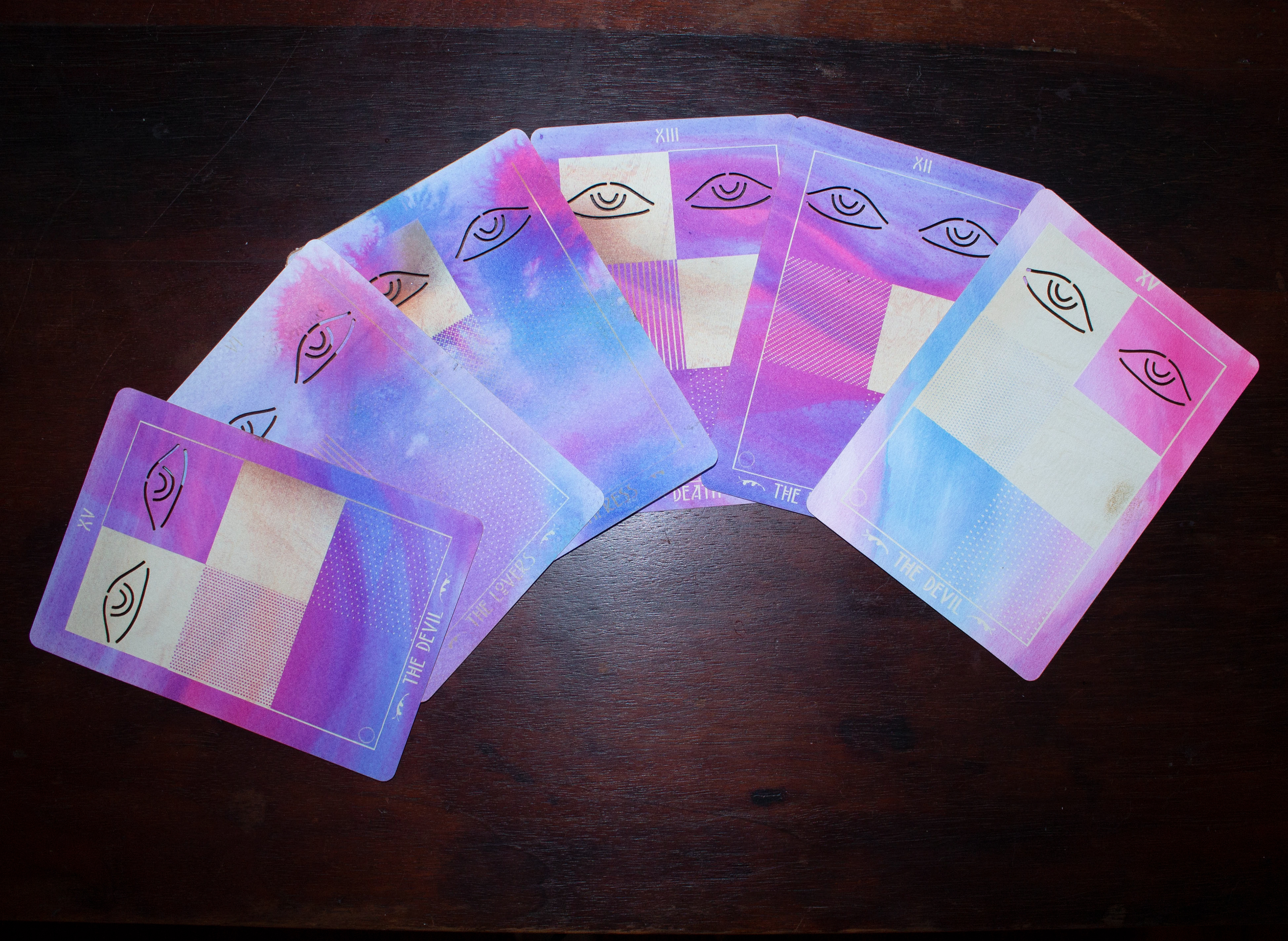 A collection of major arcana tarot cards created from systematic patterning from Microsoft Excel.